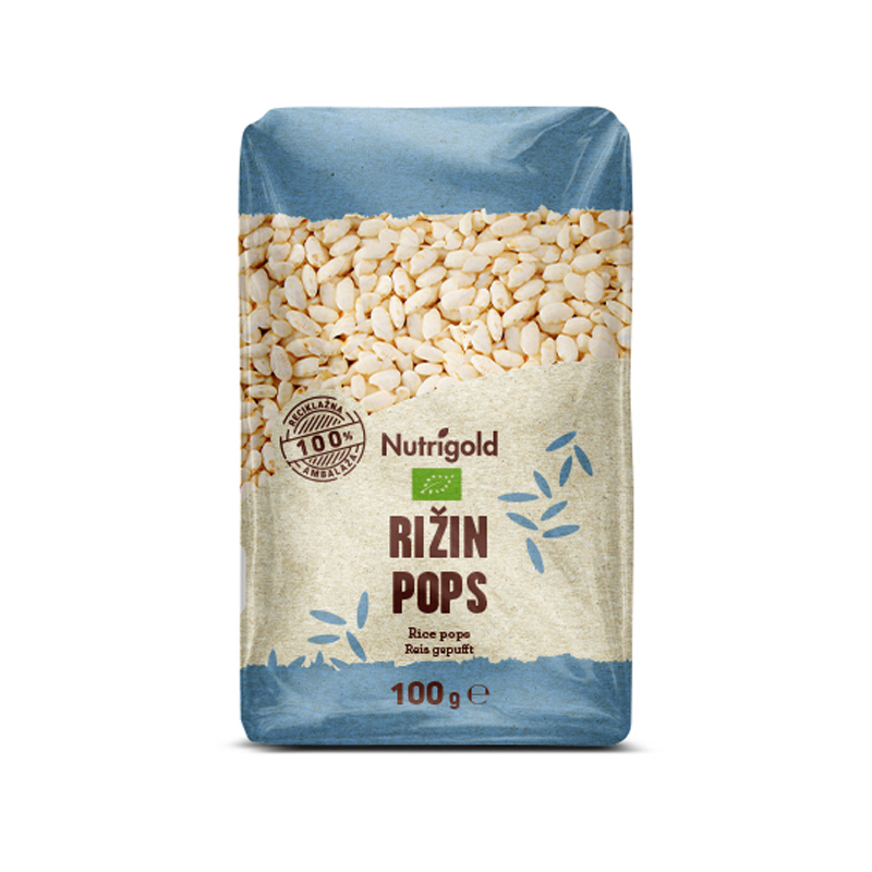 Nutrigold rižin pops je visokokvalitetan organski proizvod od 100% ekspandirane riže. Nastaje stavljanjem zrna riže u stroj pod visokim pritiskom nakon čega dobivamo savršeno pahuljast i lagan proizvod.