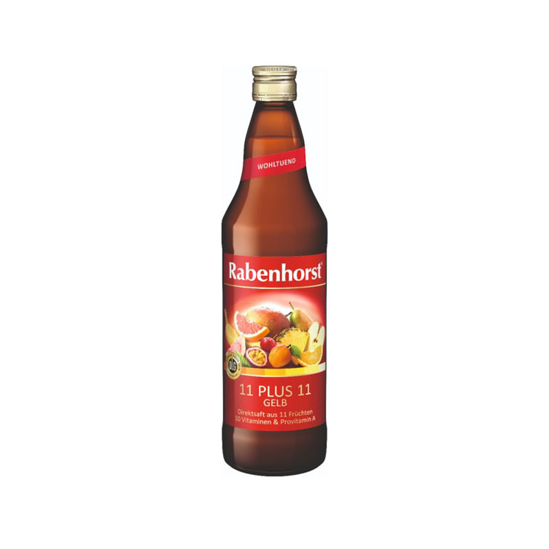 Ako nemate vremena unijeti u Vaš organizam dovoljno potrebnih vitamina, Rabenhorst 11+11 je odlično rješenje za vas! Idealna je kombinacija zdrave ishrane i užitka, te konzumacijom samo 100 ml ovog soka zadovoljavate 30% dnevnih potreba (RDA) vitamina A, te 50% dnevnih potreba za ostalim vitaminima.