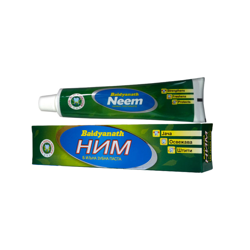 Nim zubnu pastu čini odabrana mješavina vijekovima korišćenih trava za higijenu usta, zuba i desni. Ova biljna zubna pasta sadrži čak 6% ekstrakta biljke nim, što se teško može naći u bilo kojoj drugoj ajurvedskoj zubnoj pasti.