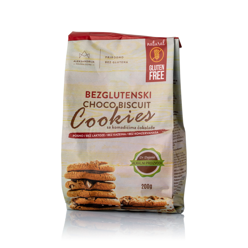 Sastav: pirinčano brašno, brašno od prosa,, kukuruzni skrob, šećer, biljna mast (suncokret), brašno od heljde, komadići čokolade 8% (šećer, najmanje 40% suvih kakao djelova, najmanje 7% kakao maslaca), vanil šećer, sirovi sojin lecitin, brašno guar pasulja, sredstva za dizanje testa (amonijum bikarbonat, soda bikarbona), kuhinjska so.
